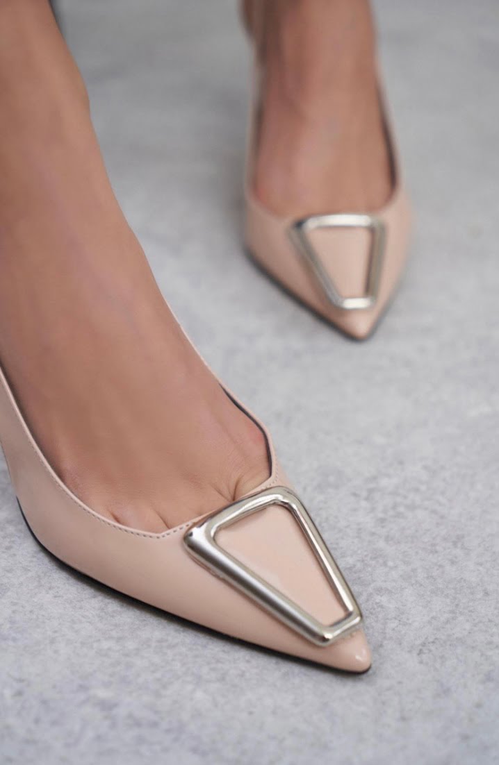 Λουστρίνι μυτερές γόβες με διακοσμητικό τοκά.